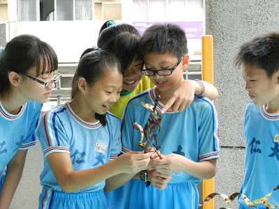 圖說:臺中市大仁國小學生展示相思豆,以及多種樣子類似的豆子。攝影/張彩鳳