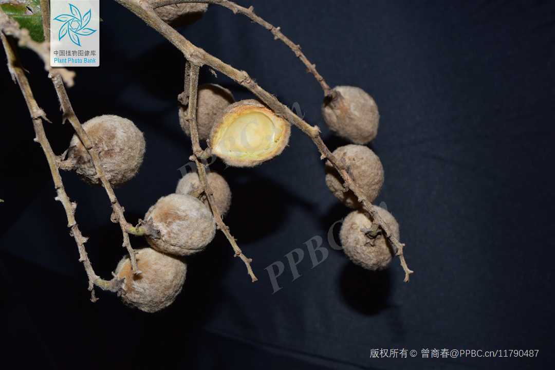 常绿乔木,高达20米;树皮灰褐色,有较浅的纵裂纹,全体被黄褐色茸毛。奇数羽状复叶,长20-25厘米,托叶三角形,密被黄褐色绒毛;叶柄长4-5厘米,叶轴长8-10.5厘米,叶轴在最上部一对小叶处不延长;小叶2-3对,革质,椭圆状倒披针形至倒披针形,长5-12厘米,宽3-7厘米,先端短急尖,基部楔形,上面绿色,侧脉12-15对,两面凸起,边缘稍弧曲;小叶柄粗,长2-5毫米,密被褐色短柔毛;小托叶披针形,密被茸毛。圆锥花序顶生,长17-30厘米,略开展,密被柔毛;花梗长约2毫米;萼齿三角形,密被锈褐色柔毛;花冠白色,旗瓣阔圆形,宽约1.2厘米,连柄长约1厘米,翼瓣阔椭圆形,长约9毫米,宽约6毫米,基部耳形,龙骨瓣长约7毫米,宽约4毫米,基部一侧略成耳形,柄长4-5毫米;雄蕊10枚,花丝无毛,长6-12毫米;子房阔卵形,无柄,密被柔毛,胚珠1粒,花柱丝状,长6-12毫米,一侧基部有柔毛。荚果阔卵形或倒卵形,肿胀,长约4厘米,宽2.5-3.5厘米,厚约1.5厘米,先端钝或短凸头,基部圆,无果颈,果瓣外面密被茸毛,内壁无隔膜,有种子1粒;种子近圆形或阔倒卵形,微扁,长1.5-2.4厘米,宽1-1.5 (-2.1)厘米,暗栗色或黑色,有光泽,种皮密布小凹点,种脐小,椭圆形,长1-1.5毫米。花期6月,果期10月。