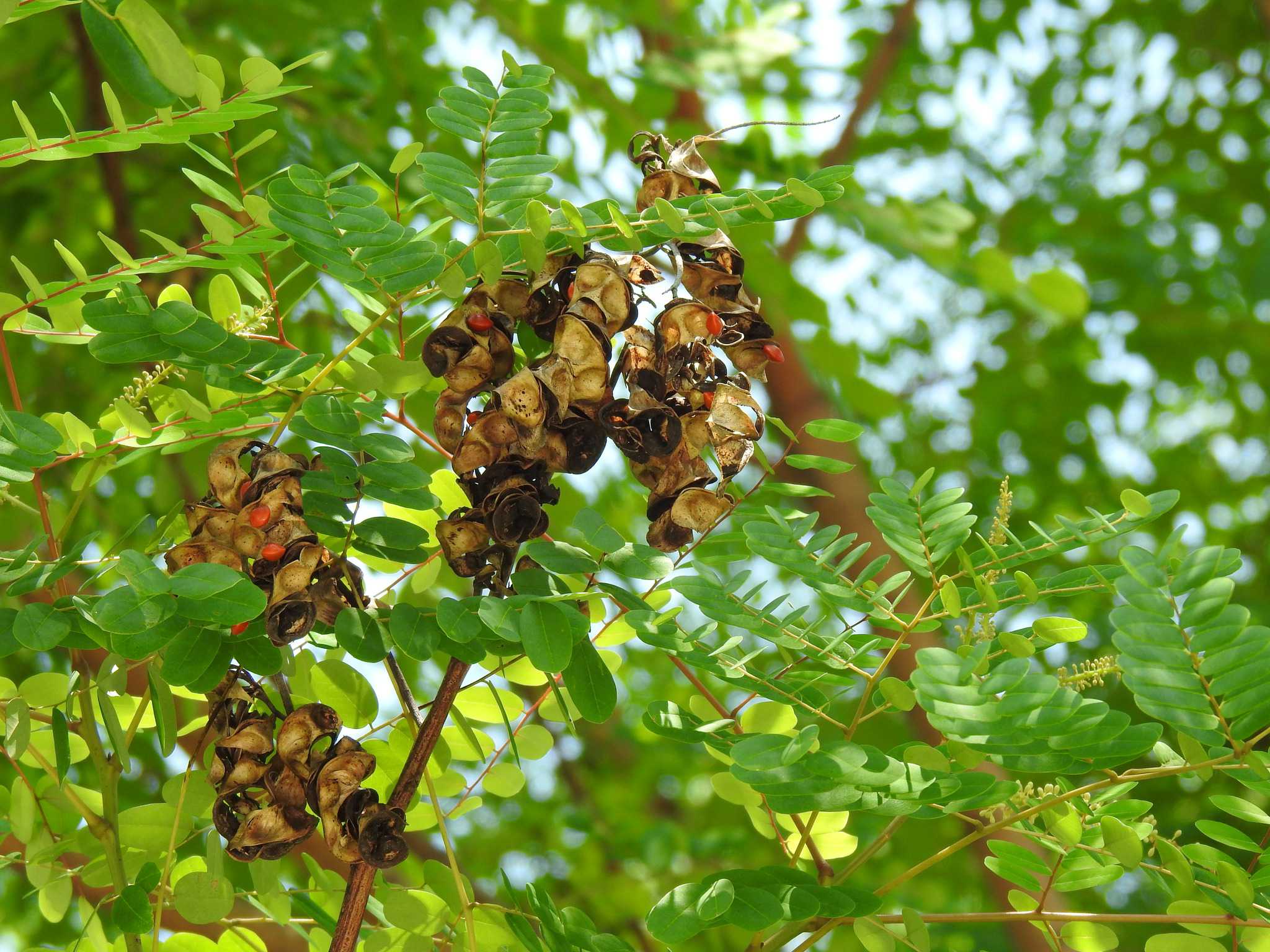 4.孔雀豆已成熟乾裂的果實,可看到鮮紅的種子